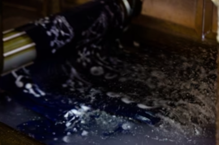染め終わった生地から糊や余分な染料などを洗い流します。