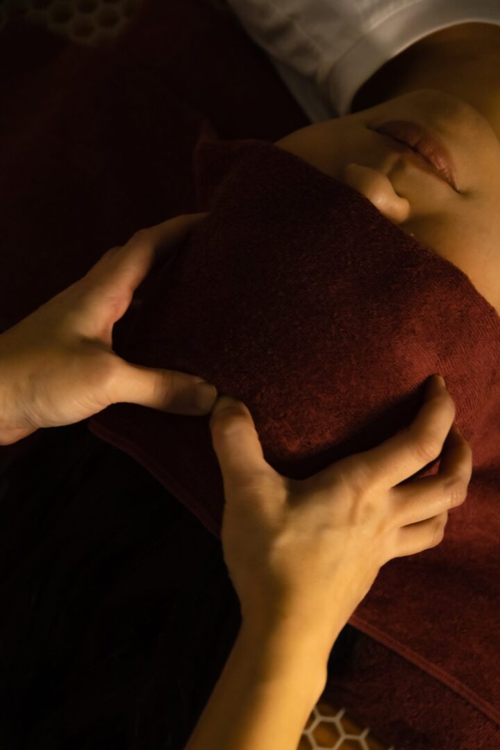小顔・リフトアップ効果のあるヘッドスパで、リラックスし、顔のむくみを解消。