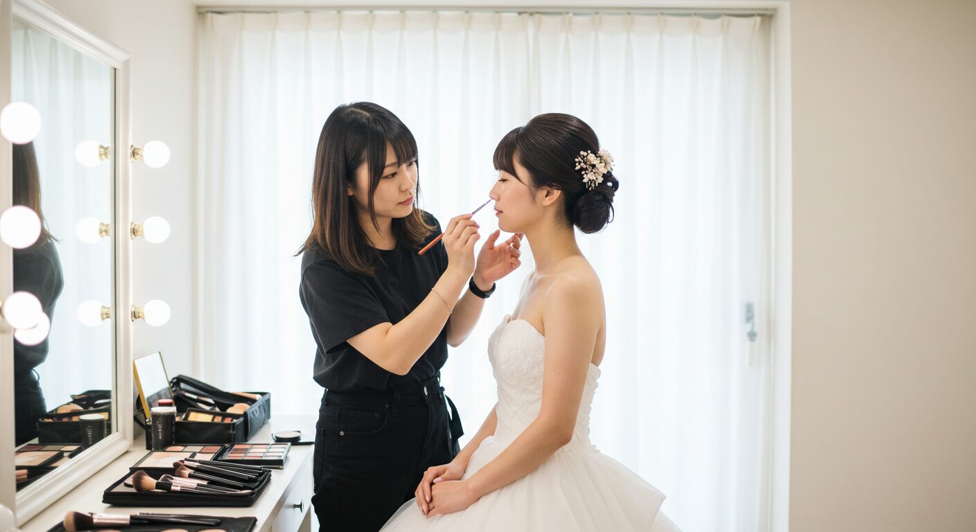 結婚式当日の美しさを最大限に引き出すメイクとヘアメイクで自信を持って特別な撮影を迎えられます。
