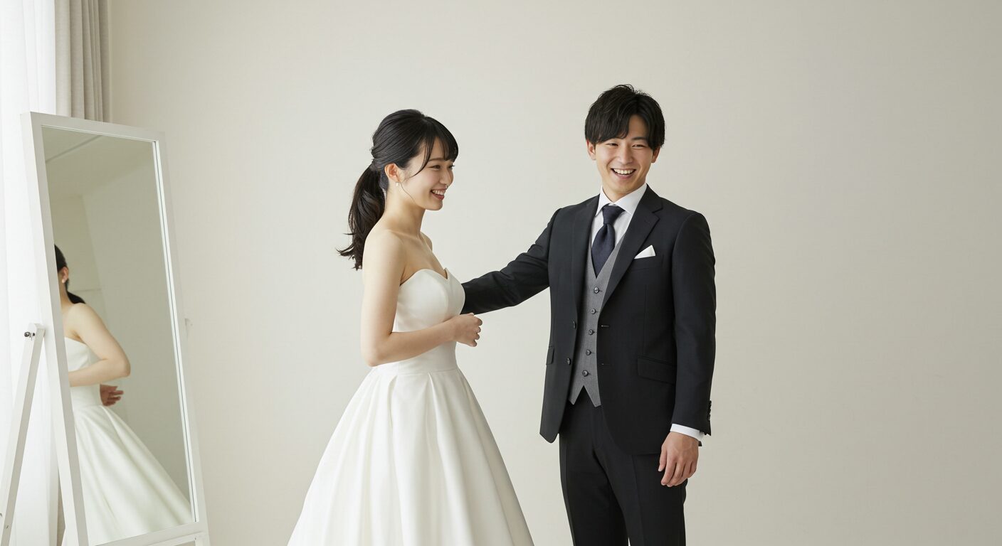 スタイルが良く見えるウエディングドレスやスーツのコーディネートをし、新郎新婦の魅力を引き立てます。