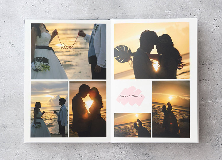 贅沢なA4相当のサイズのフォトアルバムは全て国内生産。フジフィルム最高品質の写真プリントです。沖縄で撮影した特別なウエディングフォトの思い出を子どもたち孫たちの代に残しましょう。ご両親へのプレゼントにもおすすめです(増刷オプションあり)。